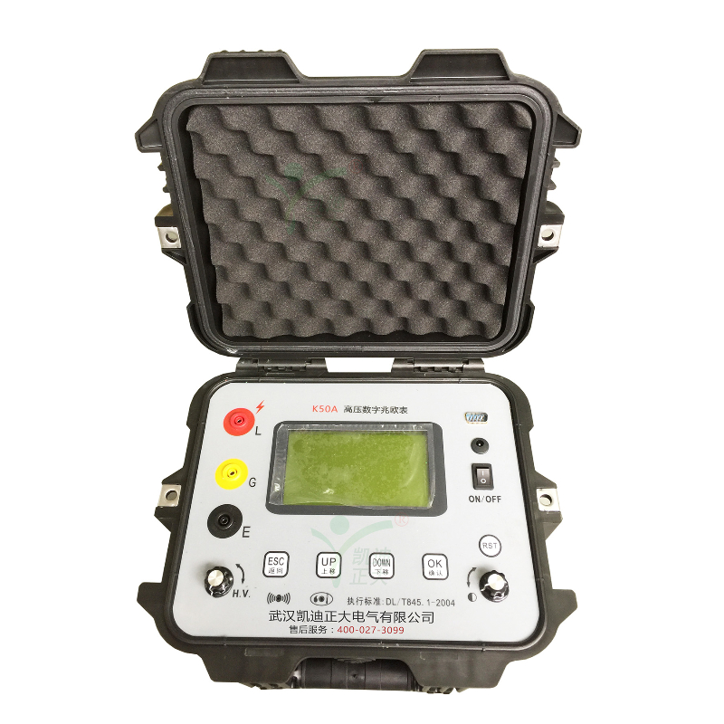 KD50A高壓絕緣電阻測試儀具有50V、100V、250 V、500V、1.0kV、2.5kV、5.0kV、10.0kV共8個電壓輸出檔,測試最大可達(dá)10TΩ。容量大、抗干擾強(qiáng)、液晶屏同步顯示、交直流兩用、操作簡單、自動計算各種絕緣指標(biāo)、吸收比、極化指數(shù)、各種測量結(jié)果具有防掉電功能等特點(diǎn)。是測量大容量變壓器、互感器、發(fā)電機(jī)、高壓電動機(jī)、電力電容、電力電纜、避雷器等絕緣電阻的測試儀器。
