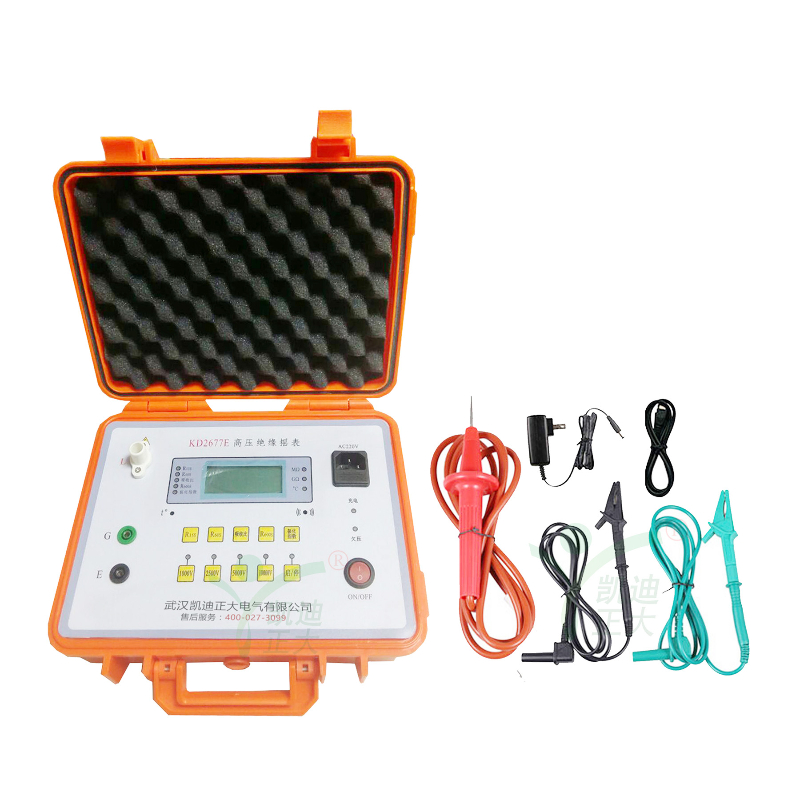 KD2677E高壓絕緣搖表是根據(jù)絕緣電阻測(cè)量的基本要求,采用較新電子電路設(shè)計(jì)而成的,其基本原理是采用電壓、電流法測(cè)量被測(cè)物的電阻值:R=V/I。機(jī)內(nèi)的存儲(chǔ)、運(yùn)算電路使本機(jī)可自動(dòng)測(cè)量吸收比(R1min/R15s)和極化指數(shù)(R10min/R1min)。