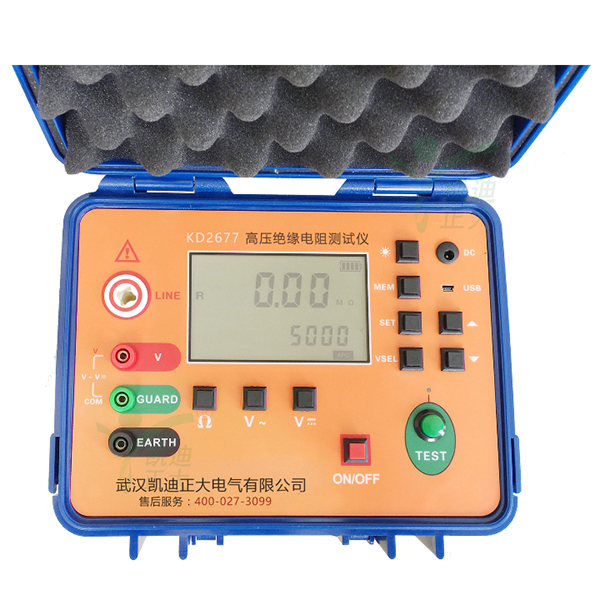 KD2677高壓絕緣兆歐表又名高壓絕緣電阻表,用于絕緣電阻的測試。本儀表具有大屏幕LCD灰白背光顯示、數(shù)據(jù)存儲、數(shù)據(jù)查閱、報警、自動放電、充電、自動關機等功能。同時還具備測量直流電壓交流電壓吸收比和極化指數(shù)功能。整機美觀高檔,量程寬廣,分辨率高,操作便捷,攜帶方便,準確、可靠、性能穩(wěn)定,輸出功率大,抗干擾能力強。