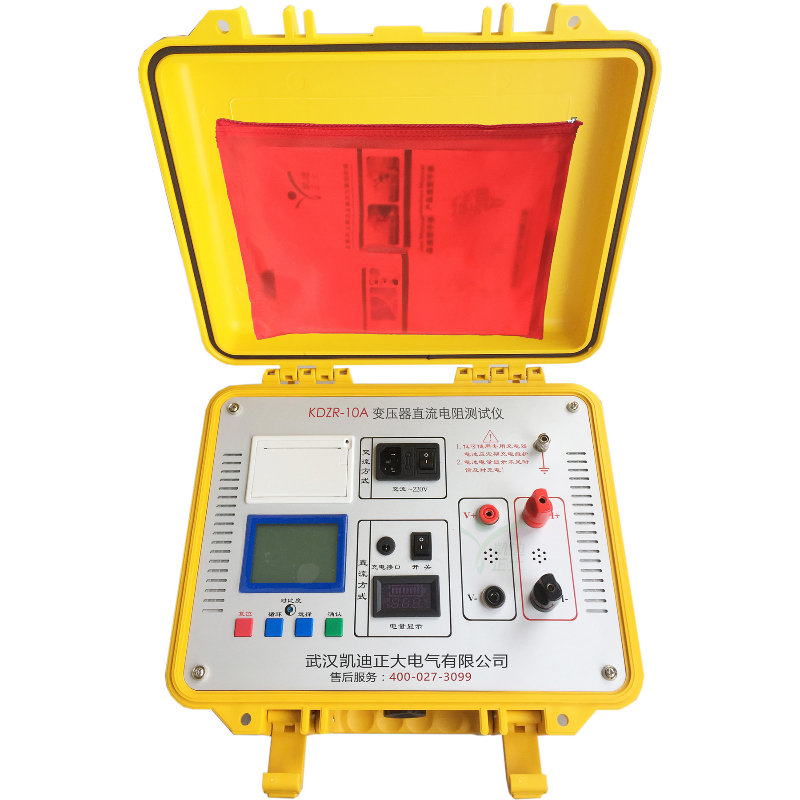 KDZR-10A變壓器直流電阻測試儀是變壓器、互感器、電抗器、電磁操作機構(gòu)等感性線圈制造中半成品、成品出廠試驗、安裝、交接試驗及電力部門預(yù)防性試驗的必測項目,能有效發(fā)現(xiàn)感性線圈的選材、焊接、連接部位松動、缺股、斷線等制造缺陷和運行后存在的隱患。為了滿足感性線圈直流電阻快速測量的需要,武漢凱迪正大電氣有限公司利用自身技術(shù)優(yōu)勢研制了KDZR-10A變壓器直流電阻測試儀采用全新電源技術(shù),具有體積小、重量輕、輸出電流大、量程寬、數(shù)字顯示、內(nèi)部鋰電池供電等特點。整機由單片機控制,自動完成自檢、數(shù)據(jù)處理、顯示等功能,具有自動放電和放電指示功能。儀器測試精度高,操作簡便,可實現(xiàn)直阻的快速測量。