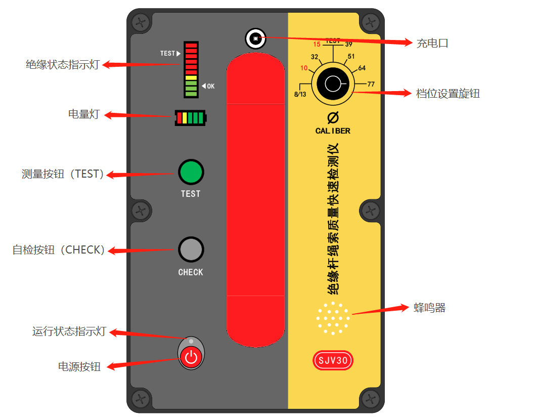 | 儀器功能 | 可測(cè)試絕緣桿、絕緣棒和絕緣繩索的絕緣狀態(tài) |