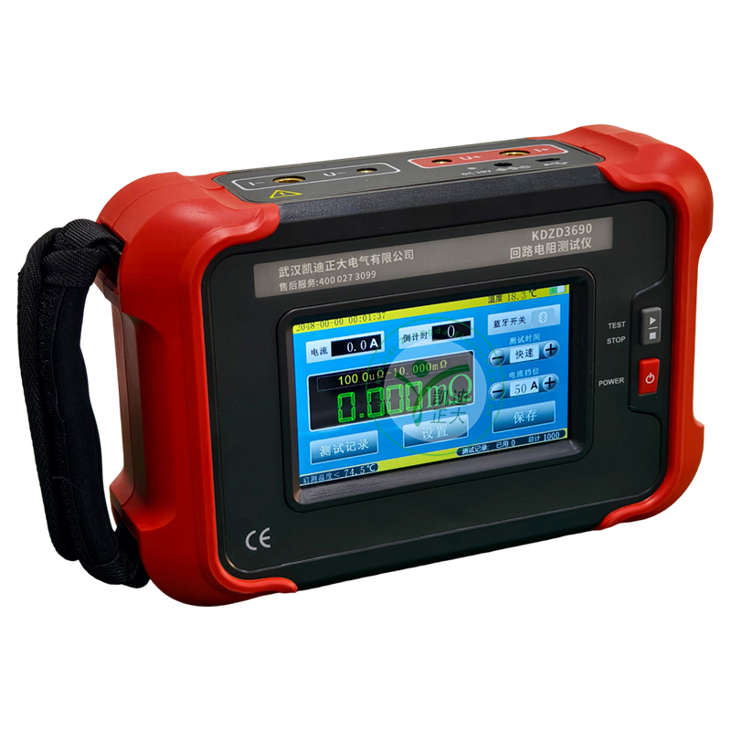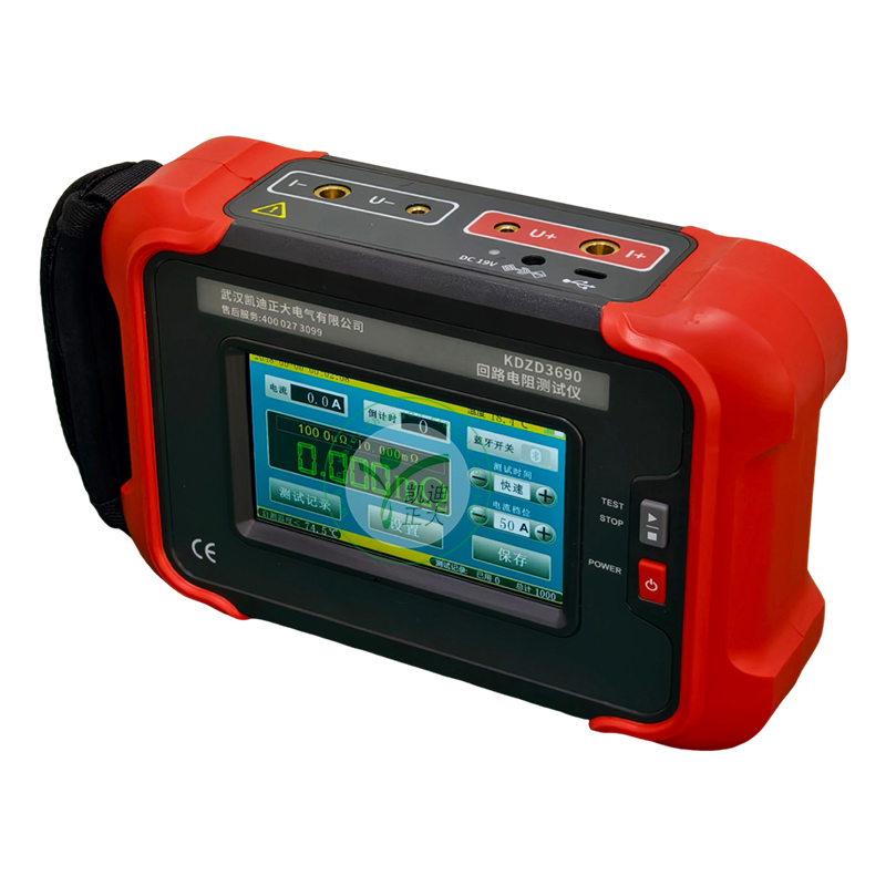 KDZD3690 手持式回路電阻測(cè)試儀根據(jù)人體工程學(xué)原理設(shè)計(jì),手感舒適,特殊設(shè)計(jì)的機(jī)體結(jié)構(gòu)具有絕緣、封閉,防漏電、防風(fēng)沙,減震防護(hù)等功能。儀表采用高亮度5寸觸摸彩屏,操作簡(jiǎn)易快速功能直達(dá),字符清晰明亮,中英文顯示界面。儀表有多檔測(cè)試電流可選,儀表顯示當(dāng)前檔位的測(cè)試范圍,用戶可自行選擇電流檔位及測(cè)試時(shí)間,滿足用戶不同場(chǎng)合的要求。