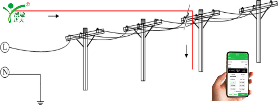 1.1.1定點:當確定故障區(qū)段后,主機輸出的信號將沿線路經故障點流入大地(如下圖),根據(jù)此特點即可采用二分法進一步定位故障。