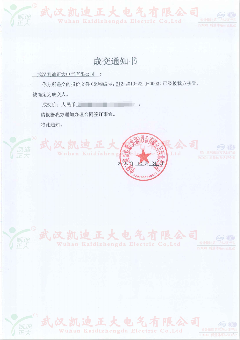2020年上班的第一天收到中國三峽新能源(集團)股份有限公司西北分公司,采購編號:212-2019-WZJJ-0003的中標(biāo)通知書。友好的合作為我司2020年開啟了新的啟程,“玖”字開頭更是中華習(xí)俗千年的好兆頭,長長久久、紅紅火火。祝愿兩家公司的精誠合作,為中國電力事業(yè)在新的一年打下堅實的基礎(chǔ),在未來的一年里再創(chuàng)輝煌。