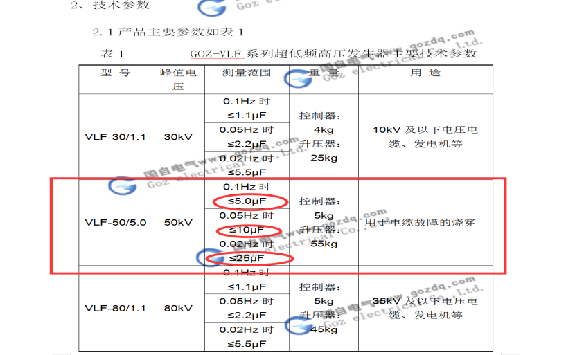 中國(guó)名牌武漢凱迪正大(KDZD)超低頻耐壓裝置在50KV峰值,均為1.1μF。