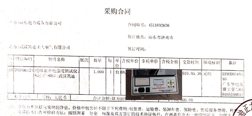 中國華電韶關(guān)熱電廠在2017年6月中旬招標(biāo)采購電氣試驗室設(shè)備一批,我司良好的口碑獲得中國華電廣東華電南雄主變(161010510001) 物資設(shè)備需求,驗收主變性能需求絕緣油介電強度測試儀;KDJJC-80KV武漢凱迪,采購合同編號:4511892636.