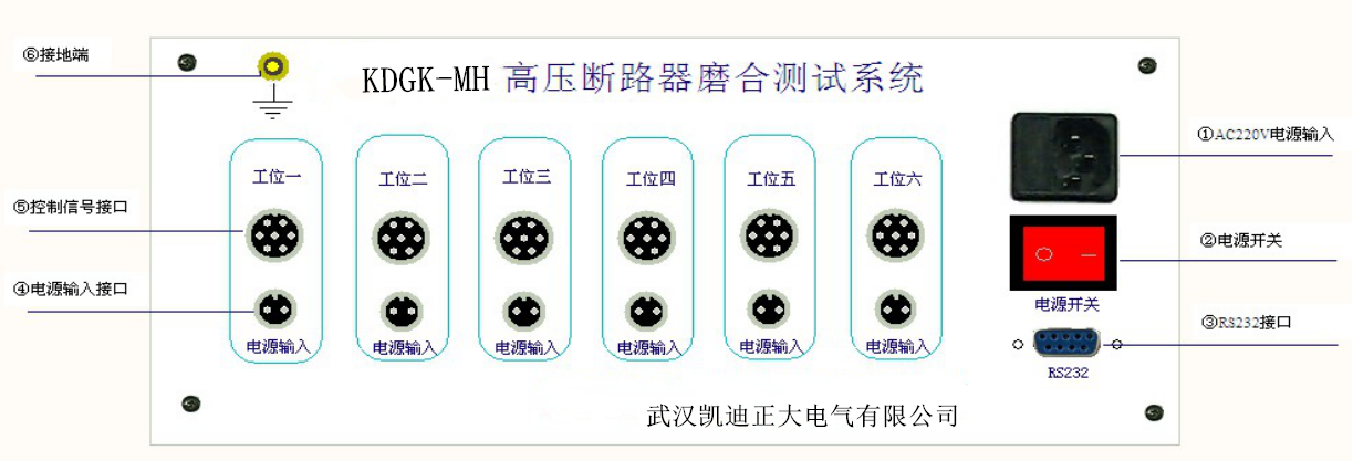 KDGK-MH高壓斷路器磨合測(cè)試系統(tǒng)控制面板以及電源信號(hào)接口說(shuō)明