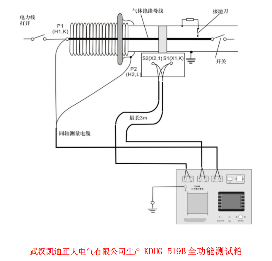 KDHG-519S多功能Engine開關(guān)柜低壓開關(guān)專用測試儀:連接KDHG-519S多功能Engine開關(guān)柜低壓開關(guān)專用測試儀的等電位地端子到保護地。 解開負載與CT的S1(X1,K)的連線。連接CT參數(shù)分析儀 的“S1、S2”及“U1、U2” 測量輸入端口Ⅰ到解開的負載端和CT的二次側(cè)端子 S2 (X2, l))。