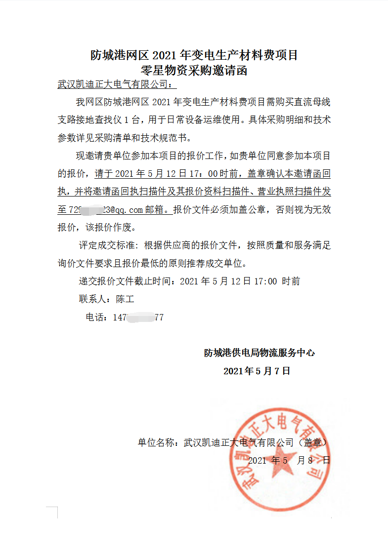 防城港網(wǎng)區(qū)2021年變電生產(chǎn)材料費項目零星物資采購邀請函
