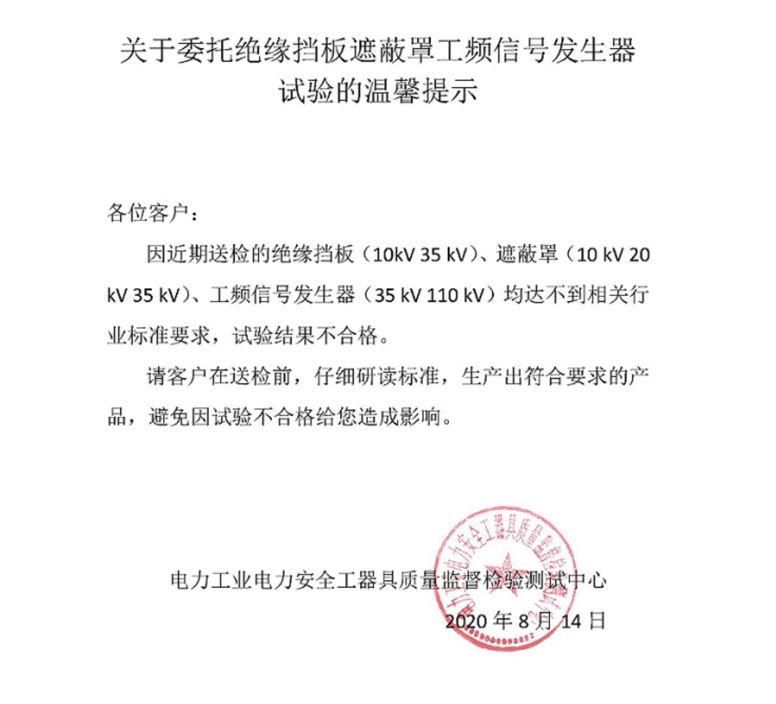 關(guān)于委托絕緣擋板、遮蔽罩、工頻信號發(fā)生器試驗的溫馨提示