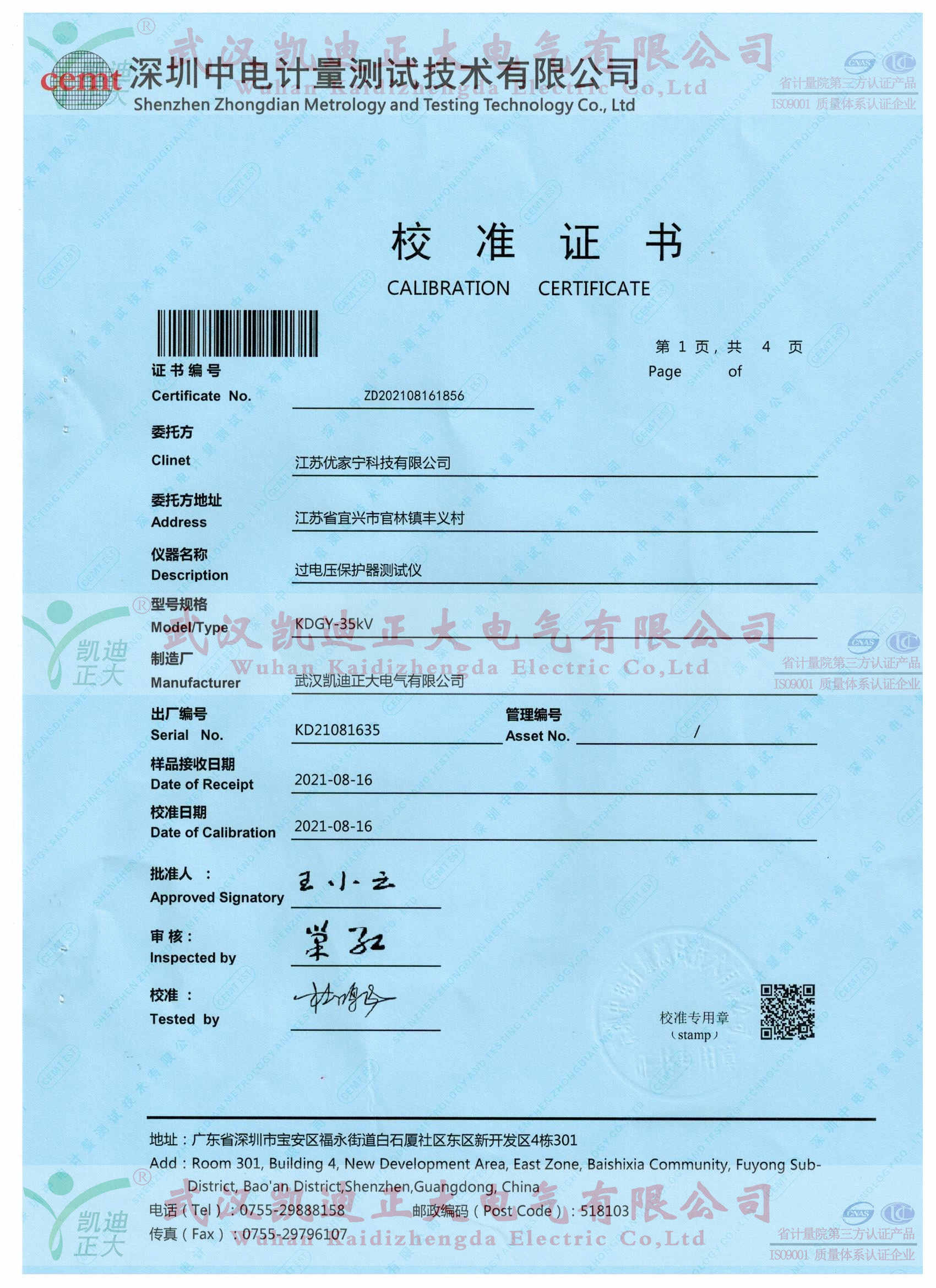 4、疊加雷電沖擊電壓試驗(推薦武漢凱迪正大電氣有限公司KDLC-800kV),試驗對象應(yīng)經(jīng)受:正極性U下疊加負(fù)極性雷電沖擊電壓U連續(xù)10次:負(fù)極性U下疊加正極性操作沖擊電壓U.連續(xù)10次。