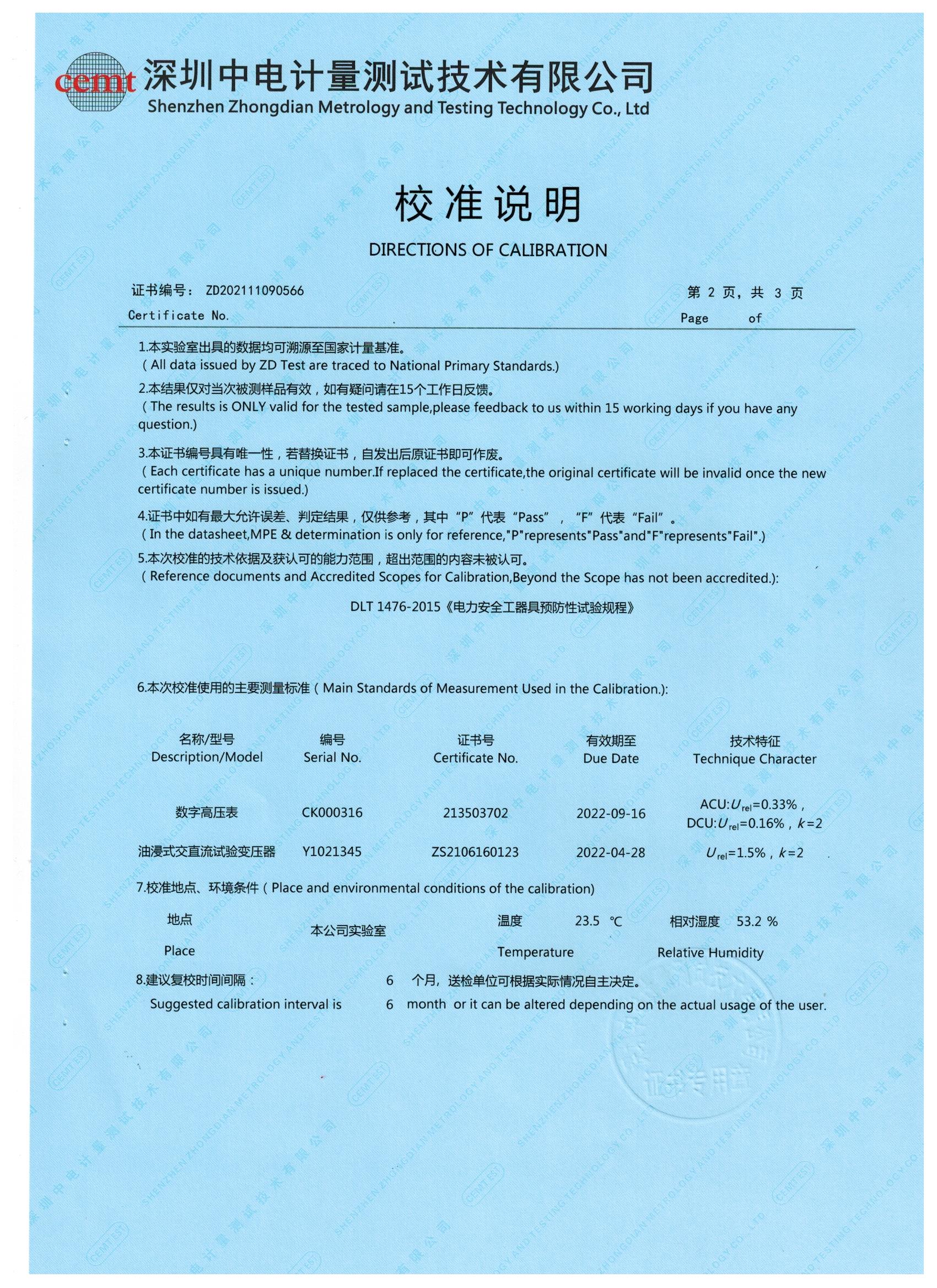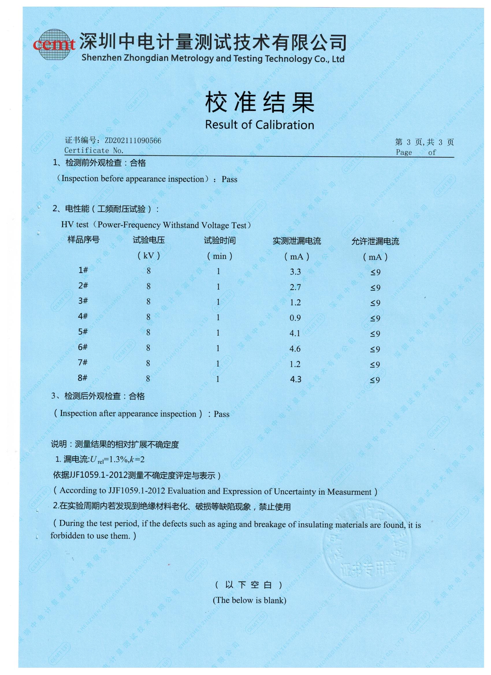 上圖為產(chǎn)品校準(zhǔn)證書