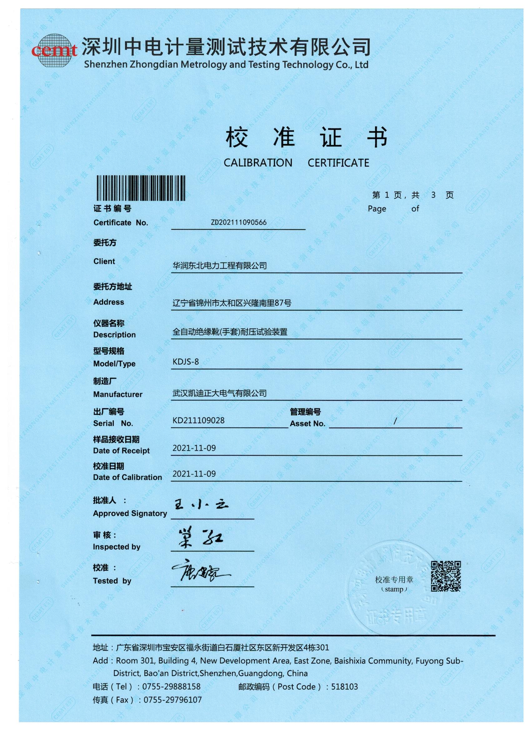 日前,華潤東北電力工程有限公司采購我公司一批自動(dòng)絕緣靴耐壓試驗(yàn)裝置,油浸式交直流試驗(yàn)變壓器,數(shù)字高壓表等產(chǎn)品,經(jīng)深圳中電計(jì)量測試技術(shù)有限公司校準(zhǔn)和檢測,產(chǎn)品幾乎符合國家標(biāo)準(zhǔn),最終合作圓滿成功。