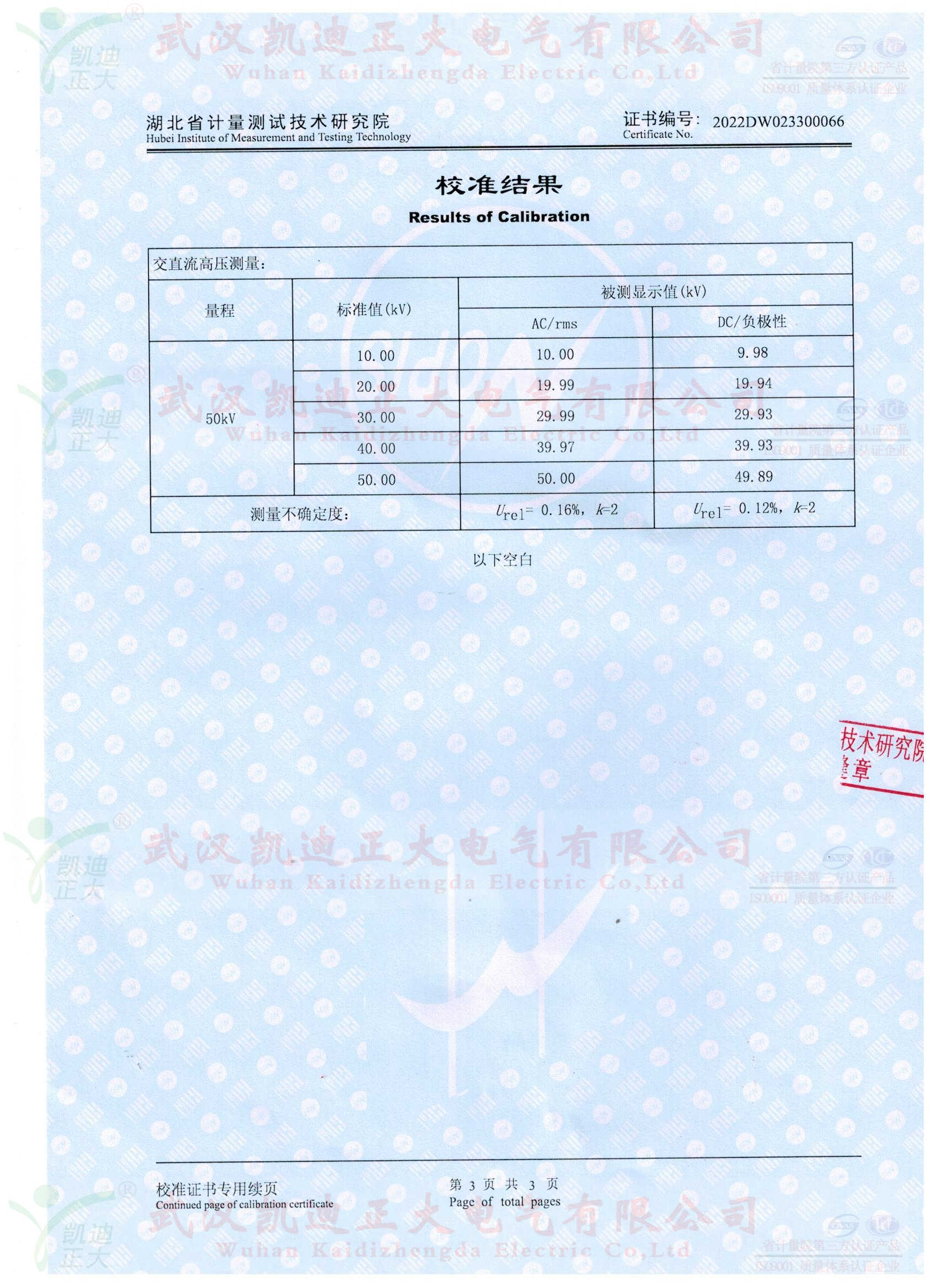 校準(zhǔn)點(diǎn)包括 0、10kV、20 kV 30 kV 40 kV 50 kV;直流電壓 0-50kV,校準(zhǔn)點(diǎn)包括0、10kV、20 kV 30 kV 40 kV 50kV。送至省級(jí)及以上計(jì)量院進(jìn)行校準(zhǔn)或檢定。