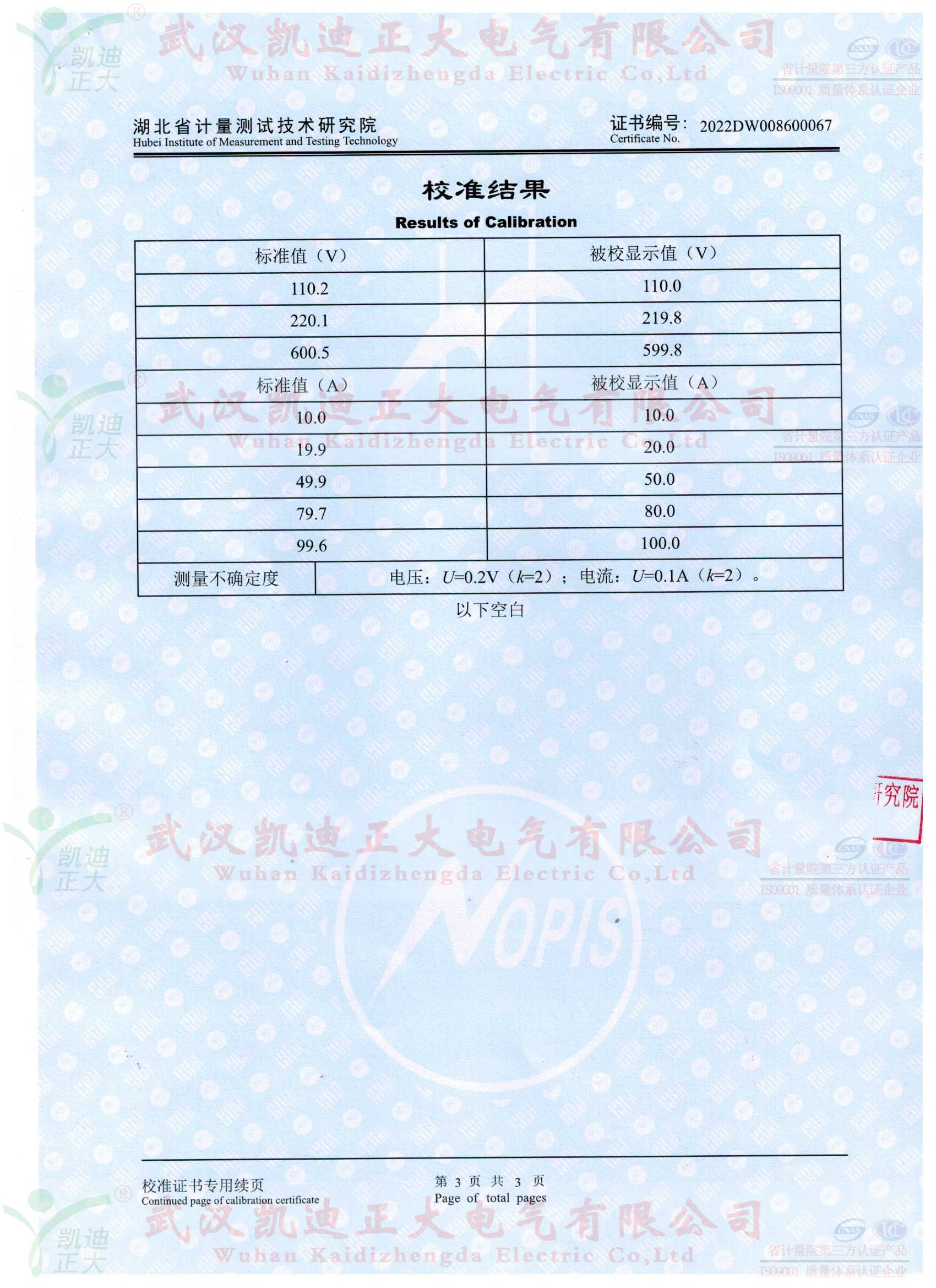 生產(chǎn)KDZD886完成后,送往省計(jì)量院。在校準(zhǔn)證書顯示:采用國家高電壓計(jì)量站(計(jì))字第2021015336號(hào)溯源機(jī)構(gòu)的高精度電流傳感器及數(shù)字多用表檢定電壓示值誤差U=0.2V;電流值U=0.1A的結(jié)果值,符合國家相關(guān)標(biāo)準(zhǔn),滿足測(cè)量不確定度。