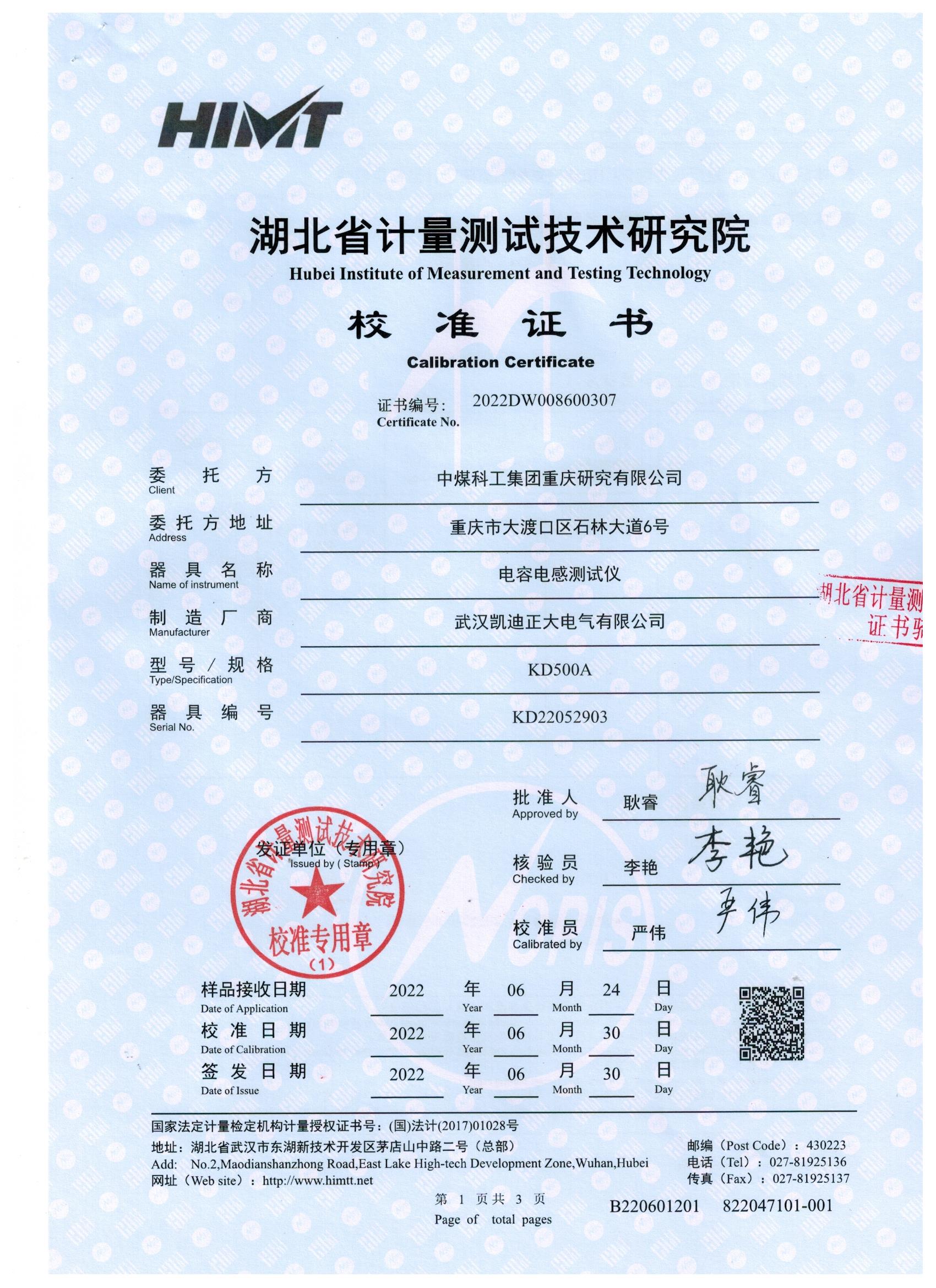 2022年6月底,中煤科工集團(tuán)重慶研究有限公司在我司采購一批電容電感測試儀,并要求我方提供第三方產(chǎn)品檢驗(yàn)證書。