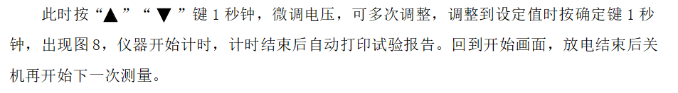 ★另外還有兩種非正常停機(jī):過(guò)壓保護(hù)停機(jī)、過(guò)流保護(hù)停機(jī)。停機(jī)后出現(xiàn)相應(yīng)的提示界面,放電結(jié)束后,再調(diào)整限制電壓值或限制電流值,再開(kāi)始下次測(cè)量。