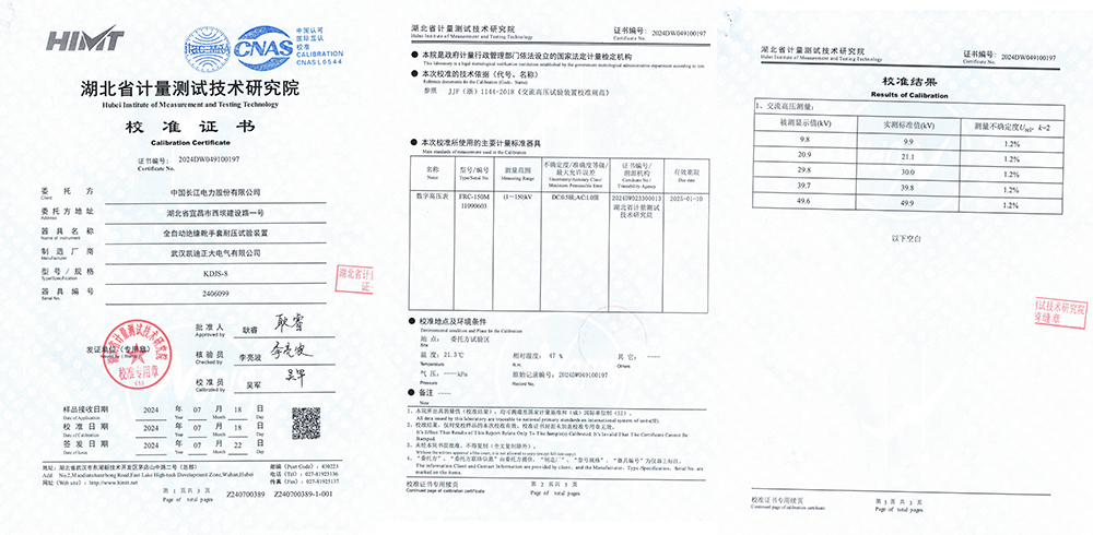 中國長江電力股份有限公司采購的我司KDJS-8全自動(dòng)絕緣靴手套耐壓試驗(yàn)裝置,在經(jīng)過湖北省計(jì)量測試技術(shù)研究院的嚴(yán)格檢測后,成功通過了參照J(rèn)JF(浙)1144-2018《交流高壓試驗(yàn)裝置校準(zhǔn)規(guī)范》的校準(zhǔn)測試,標(biāo)志著該設(shè)備在性能指標(biāo)、安全標(biāo)準(zhǔn)及技術(shù)各方面均符合要求。這一校準(zhǔn)不僅展示了凱迪正大電氣產(chǎn)品的品質(zhì),也突顯了凱迪正大電氣在設(shè)備研發(fā)生產(chǎn)方面的實(shí)力。
