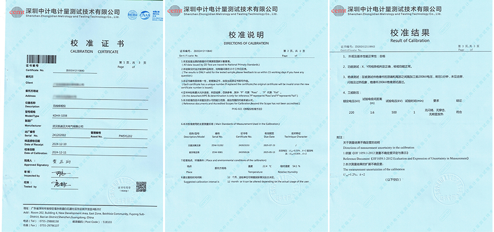 近日,廣東某能源發(fā)展有限公司訂購我司的KDHX-3208無線核相儀順利通過了深圳中電計量測試技術(shù)有限公司的專業(yè)校準(zhǔn),獲得校準(zhǔn)證書。