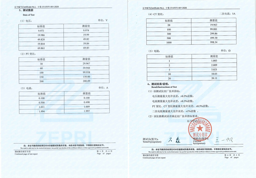 浙江某工程有限公司采購凱迪正大電氣生產(chǎn)的KDHG-518C變頻互感器特性測試儀,在國網(wǎng)浙江省電力有限公司電力科學(xué)研究院的嚴(yán)格校準(zhǔn)測試中表現(xiàn)穩(wěn)定和可靠,順利通過各項性能指標(biāo)的檢測,并成功獲得校準(zhǔn)測試報告。彰顯了KDHG-518C變頻互感器特性測試儀的性能和質(zhì)量,驗證了市場客戶在電力設(shè)備采購方面的專業(yè)眼光和嚴(yán)苛標(biāo)準(zhǔn)。