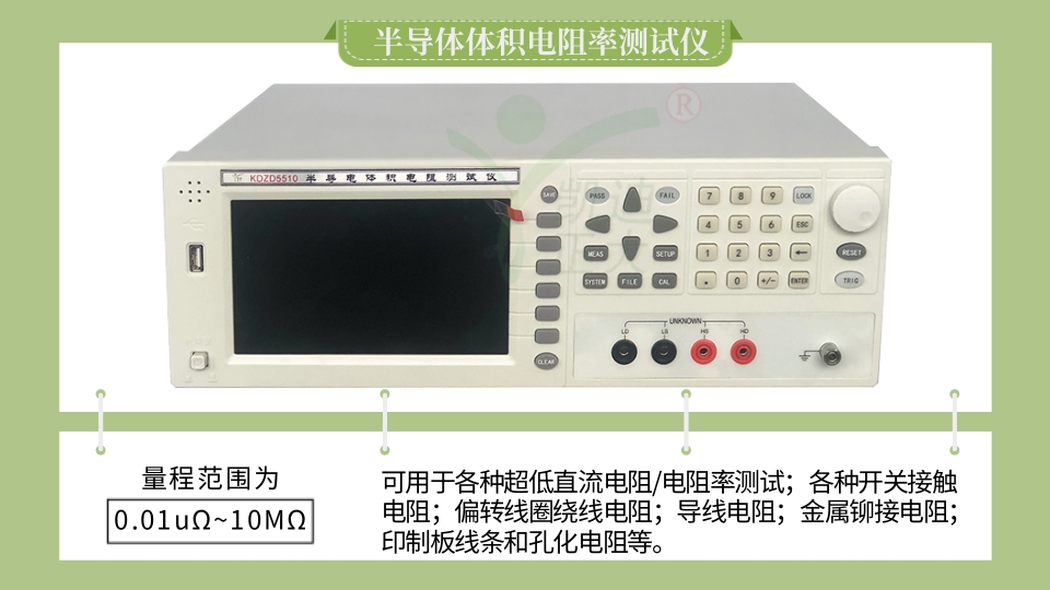 KDZD5510半導(dǎo)體體積電阻率測試儀可用于電線電纜、分流器、金屬、導(dǎo)體等各種超低直流電阻/電阻率測試。也可測量各種開關(guān)接觸電阻;接插件接觸電阻;繼電器線包和觸點(diǎn)電阻;變壓器、電感器、電機(jī)、偏轉(zhuǎn)線圈繞線電阻(感性負(fù)載請選用單向電流模式測試);導(dǎo)線電阻;車、船、飛機(jī)的金屬鉚接電阻;印制板線條和孔化電阻等。