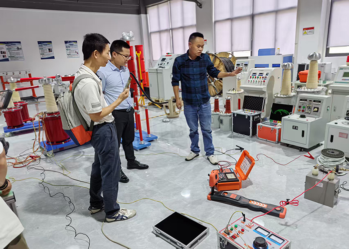 訪問伊始,代表團在凱迪正大技術人員的陪同下參觀了產(chǎn)品展廳。展廳內(nèi)陳列著凱迪的系列產(chǎn)品,如:六相微機繼電保護測試儀、工頻耐壓試驗裝置、回路電阻測試儀等等,展現(xiàn)了公司在電力測試領域的技術積累。技術人員詳細介紹了各產(chǎn)品的性能特點及應用場景。