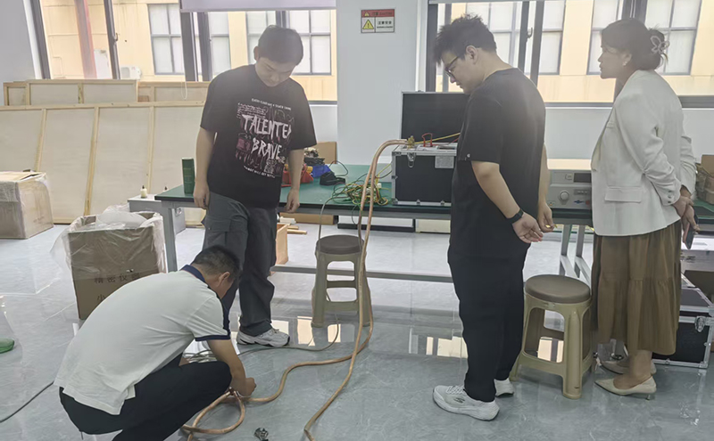 第二站:生產(chǎn)車間——見證制造匠心隨后,技術(shù)人員陪同嘉賓走進(jìn)生產(chǎn)車間。我們向來賓簡要說明了高壓諧振電抗器、超高壓耐壓測試儀等產(chǎn)品的組裝與調(diào)試。希望通過呈現(xiàn)有序的生產(chǎn)現(xiàn)場和嚴(yán)謹(jǐn)?shù)淖鳂I(yè)流程,讓代表團(tuán)感受到凱迪對產(chǎn)品品質(zhì)的切實(shí)追求與保障能力。
