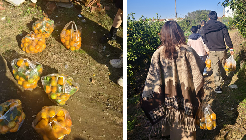 午餐的歡愉余韻未消,大家便迫不及待地提上果籃,奔向那片金色的海洋,真正的“探險(xiǎn)”就此開(kāi)始!步入橘林,漫山遍野的橘樹(shù)碩果累累,金黃的果子掛滿(mǎn)枝頭,清新的果香沁人心脾。同事們瞬間化身“探險(xiǎn)家”,三五成群,穿梭于果樹(shù)之間。